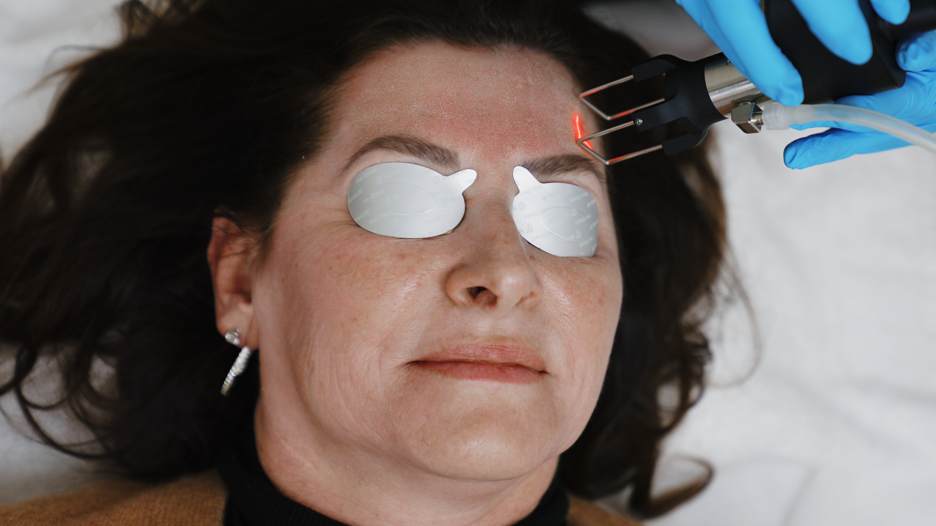 A topical anesthetic is applied prior to treatment.